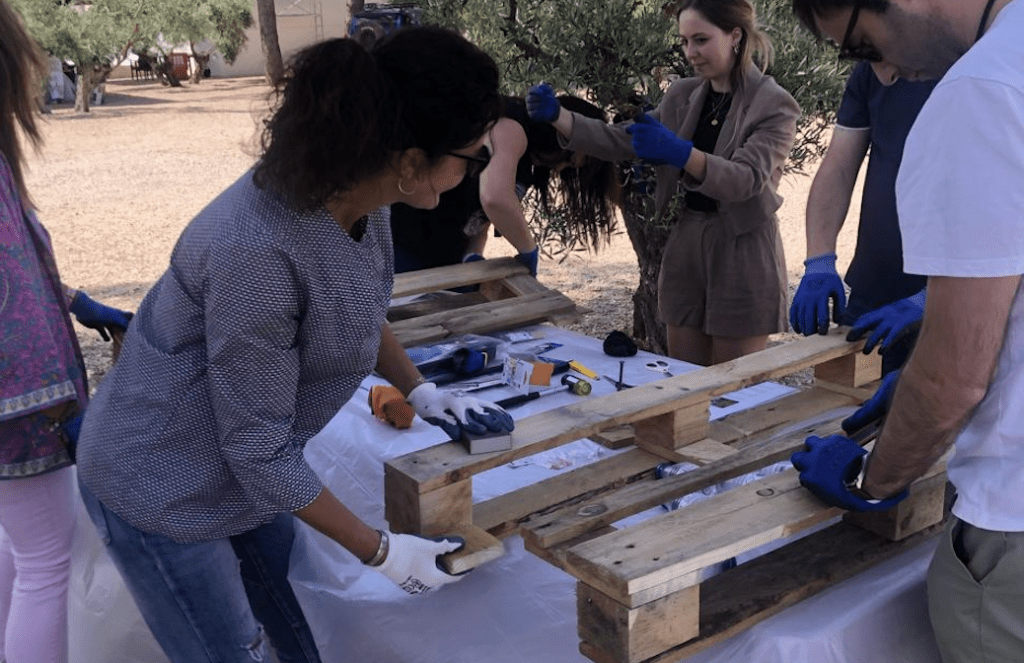 And now, we move into action: in a nearby garden, we have a CSR activity waiting for us: creating an Urban Garden.